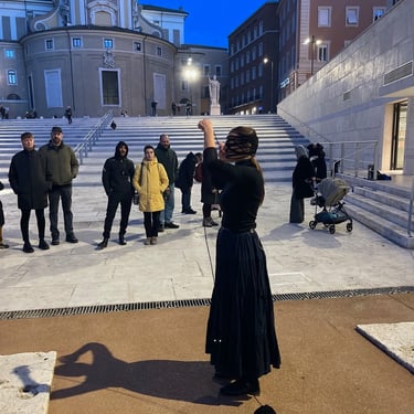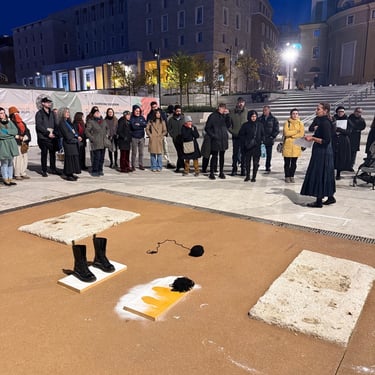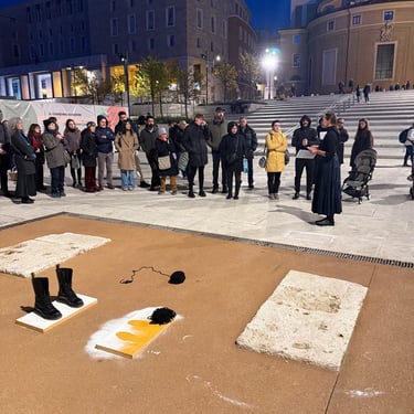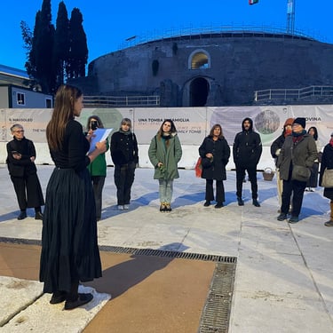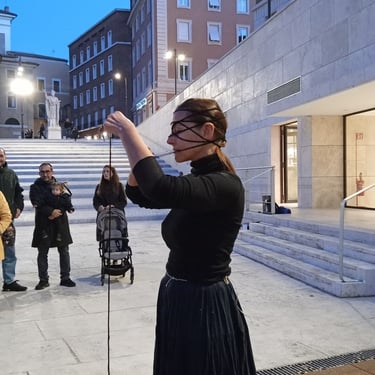 The performance unfolded through actions exploring family tensions when one breaks imposed patterns and invited the audience to reflect on Giulia’s experiences of control, rebellion, and compromise, turning historical memory into shared experience.